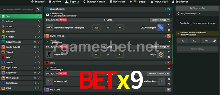 A aposta Betx9 oferece aos jogadores a experiência mais conveniente de apostas em eSports!
